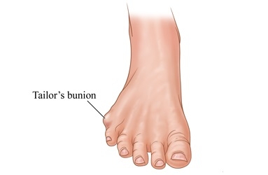 The tailor's mount appears as a swelling at the base of the fifth toe, due to a high coefficient of friction inside shoes that are too narrow. The constant pressure produces a callus - a thickening of the tissues, which leads to the appearance of a painful mount on the outside of the foot. The affected tissues are inflamed and painful, and the use of inappropriate shoes accentuates the condition. If there is a bone deformity, then the situation can be even worse in terms of symptoms and treatment. The solution to reducing pain is to eliminate the pressure. The pressure can be reduced from the outside by changing the narrow shoes, or from the inside - surgically.