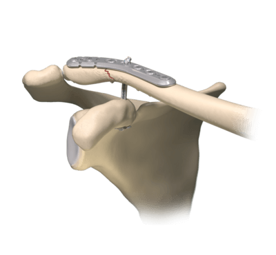 In functie de caracteristicile fracturii (fractura simpla/cominutiv, cu deplasare/fara, deschisa/inchisa, cu implicarea suprafetei articulare/fara), se fixeaza cu o placa premulata de titan si suruburi, la care se poate adauga un implant suplimentar (AC tight rope) pentru suprastabilizarea fixarii.